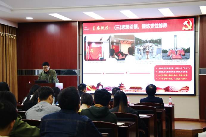 2016级环境类博士研究生党支部书记蒋惠梦以“紧扣时代脉搏,锻造支部“三力””为主题,分享优秀支部建设案例。老王论坛 环境类2016级博士研究生支部成立于2016年9月,荣获首批全国高校“百个样板党支部”称号,充分发挥了研究生党支部的战斗堡垒与党员先锋模范作用。党支部主要做法有:建章立制,强化支部管理;练好内功,对话青春信仰;思想引领,锤炼党性;服务群众,弘扬奉献精神;线上线下,创新活动方式;总结推广,打造工作品牌。并向参会人员分享了在支部活动中获得的成效经验。