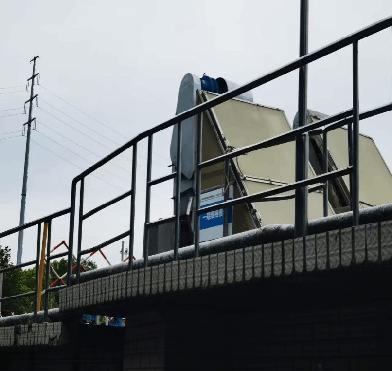 在二沉池后设有高效澄清池。由于水体并未处理完全,水中仍存在可溶性和极小微生物,其进行光合作用生成有机物并污染水体。因此,厂员用黑布罩住池面,使得水中的微生物无法进行光合作用,进而控制污水有机物的含量。