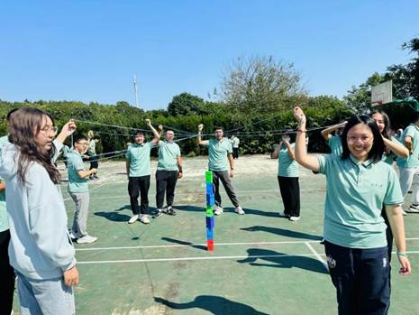 在组队完成后,大家便进入了团队竞赛环节。合力建塔这一游戏需要每个人一起拉紧绳头来控制塔钩移动,用塔钩将一块块塔吊起并平稳地搭建在一起。这一拓展项目培训让各个团队协作起来,分工互补,做到统一指挥、统一口令、统一行动,同一条心。
