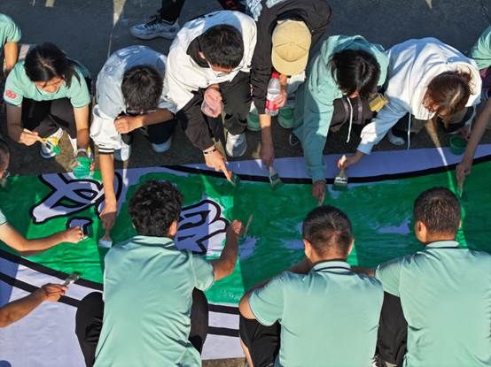 抵达拓展基地之后,首先进行了一系列的预热活动,做集体操、选队长、画队旗、喊口号,使同学们打破隔阂,迅速融入团队。千奇百怪的队旗也展现了同学们的活力和创造力。