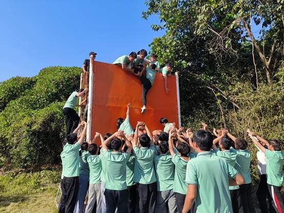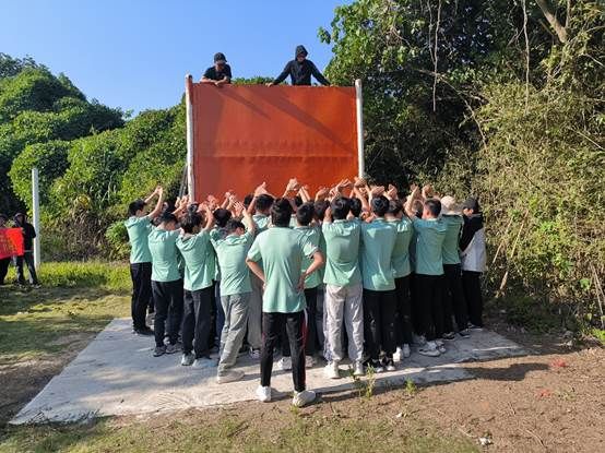 大部分同学参与了这项挑战,有的从攀爬甘做人墙一直到撑起最后一位同学翻过,有的爬上高墙之后连续拉起20多位同学,为了整个团队都能完成“逃生”在这个过程中大家相互协作、咬紧牙关直到最后一刻。