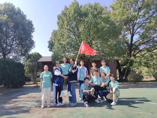 最后,同学们聚在一起,交流翻越毕业墙过程中的心得与感想。在各组队长的带领下,大家高举队旗聚在一起,共同为自己在这个项目中表现出来的勇敢与团结欢呼!