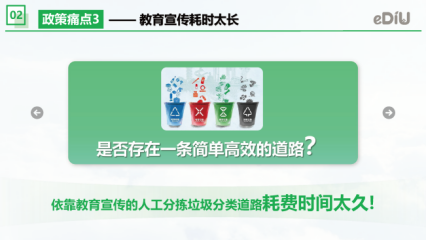 为解决垃圾分类细则繁多复杂、定时定点投放费时费力的问题,针对目前同类产品成本高昂、自动化程度不高的问题,“e丢”智能分类垃圾桶通过独到创新的硬件设计以及云端算法,大大降低了产品的成本,同时改进了Efficient-NetV2网络模型,提高了垃圾分类的准确率,对比于市场上其他现有的产品,“e丢”智能分类垃圾桶投放时间显著减少,成本上也有显著优势,目前产品正在进行量产计划的推进,希望在不久的将来能够在全国推广“e丢”智能分类垃圾桶,与一定数量的政府达成合作,从而切实帮助垃圾分类政策的推行。