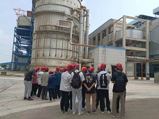 到达厂区后,技术人员带领学生前往生产一线,参观了脱硫塔、电除尘装置等设备。在参观过程中,同学们通过与技术人员深入探讨交流,了解了脱硫、脱硝、除尘等设备的工作原理和实际生产情况,深刻领悟了发电厂在产能同时为减少环境污染做出的努力。