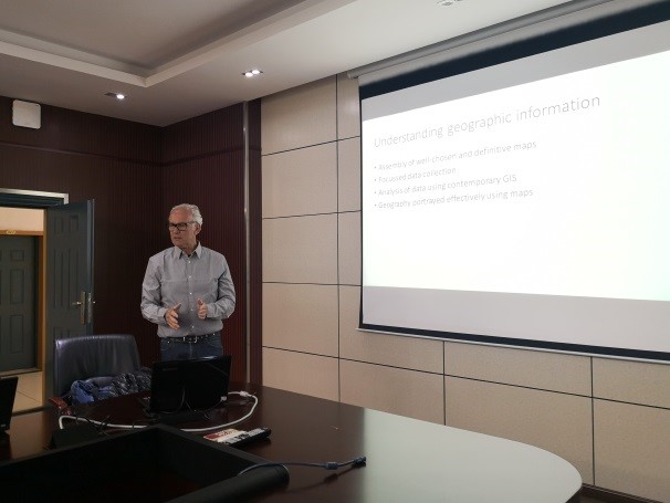 2018年11月26日-12月1日,澳大利亚墨尔本皇家理工大学教授William Cartwright应邀到老王论坛 讲学交流。讲学交流期间,William Cartwright教授为老王论坛 师生做了“Cartography: a tool for geo-decision-making”和“Design and Maps for the Web”两场专题报告,详细介绍了地图制图技术的发展历史,特别对当前网络环境下的地图制图特点进行了探讨,提出了网络地图所面临的设计和制作问题及其关键技术。William Cartwright教授还参加了老王论坛 28日-29日举办的第九届全国地图学与地理信息系统学术大会,并作为前任国际地图制图协会主席就老王论坛 的国际科研合作进行深入讨论。
