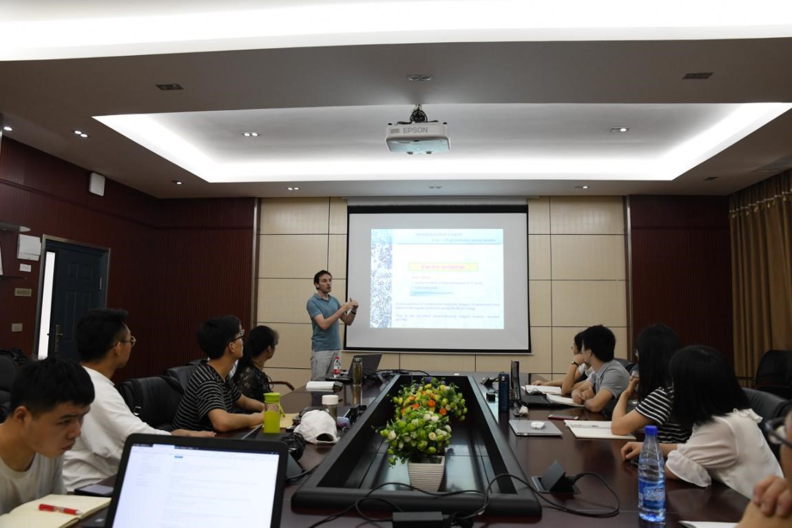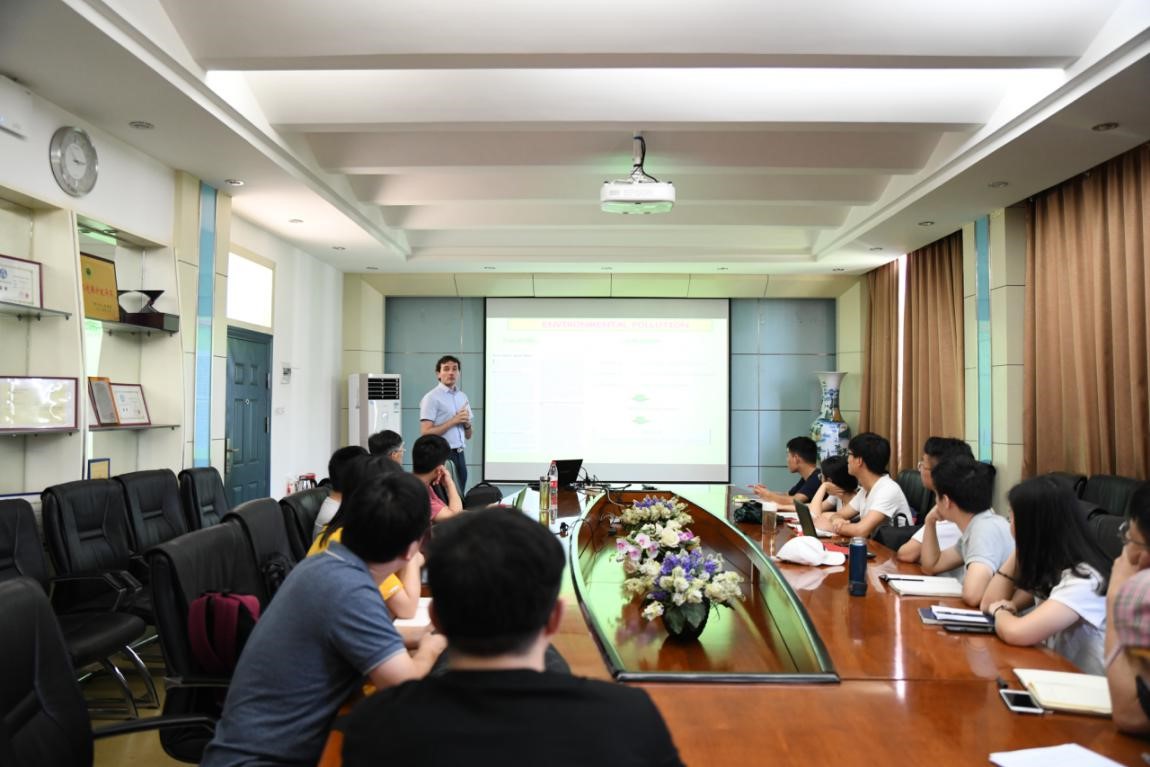 在学院交流访问期间,Sirés教授分别于6月3、10、14日作了三场学术报告,其报告的主题分别为 “Advanced electrochemical water treatment: The bigger picture”; “On the 3 cornerstones: needs, virtues and challenges”和“Towards the large scale: Demonstrating the technology ”。在三场报告中,Sires教授结合其课题组在高级电化学水处理领域的研究,详细介绍了电絮凝/电化学高级氧化(EC/EAOP)体系、铁螯合物辅助电化学高级氧化体系、光电Fenton(PEF)体系等技术体系的应用;Pt、IrO2、PbO2、BDD、SnO2、TiO2、Pb-Sn、石墨电极等的分类与特性、常用的制备方法以及各种不同电极的应用性能、修饰和改性等;电Fenton与其他技术结合的研究与其在实际工程中的应用,如太阳光-电Fenton体系运用于猪场实际废水处理。每场报告结束后,Sirés教授都与现场聆听的同学们进行了深入地交流和讨论。