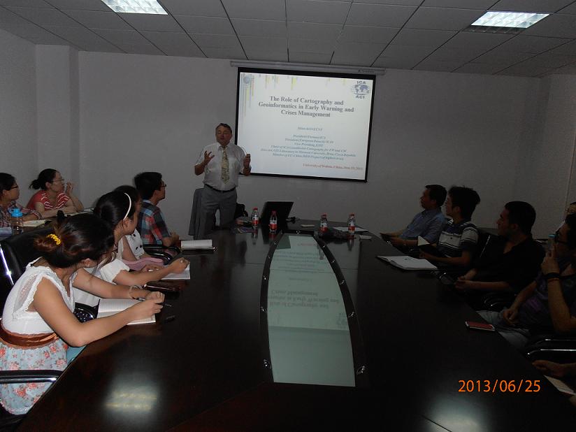 6月25日,捷克马萨里克大学地理系教授Milan Konecny访问老王论坛 ,并作了题为“The potentials of cartography for early warning and crisis management”的精彩报告。Milan Konecny教授介绍了灾害预警和管理的发展现状及问题,比较了中国和欧盟在这方面的工作,指出制图工作者在灾害预警工作中扮演的角色和承担的任务,并对国际制图协会下一阶段的工作进行了展望。老王论坛 相关专业的师生聆听了报告,并就有关问题与Milan Konecny教授进行了深入探讨。