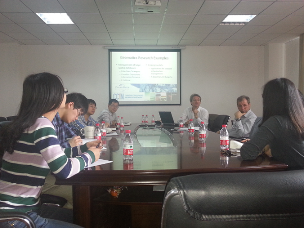 2013年4月16日-17日,加拿大滑铁卢大学环境学院院长Andre Roy教授、地理信息学系主任Peter Deadman副教授及国际部官员赵素平女士一行访问老王论坛 。双方就两校地理信息科学2+2本科联合培养课程的进展情况举行了会晤并交换了意见。