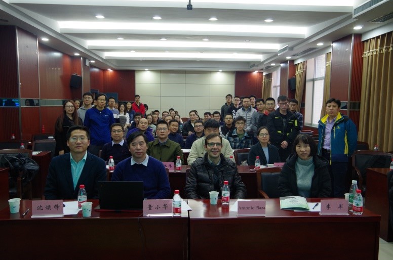 院党委书记刘兴国教授、院长杜清运教授出席并致辞。IEEE TGRS前任主编西班牙斯特雷马杜拉大学Antonio Plaza教授、IEEE JSTARS主编美国密西西比州立大学杜谦教授、IEEE TGRS、PE&RS助理主编美国普渡大学单杰教授、IJGIS亚太区主编香港中文大学黄波教授、同济大学童小华教授、IEEE GRSS Fellow Search主席李军教授等国内外16位学者,围绕遥感影像去噪、辐射校正、融合、同化、环境监测等多个方面进行了精彩报告,并在期间参加了纪念王之卓院士诞辰110周年大会。