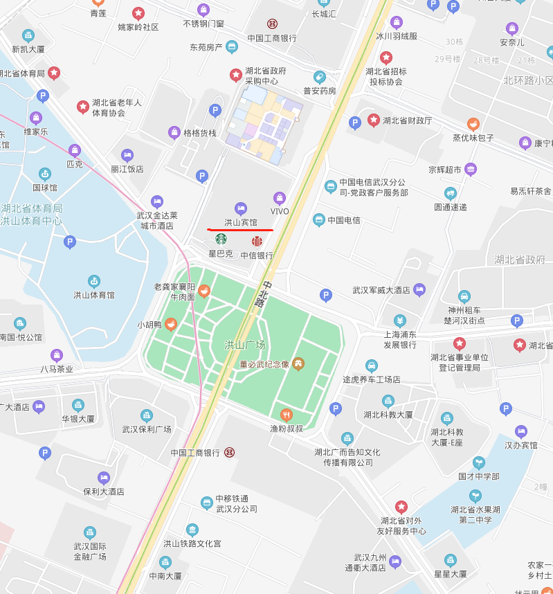 3、武昌站到洪山宾馆:公共交通:地铁4号线15分钟左右从武昌站到洪山广场站D2出口;出租车20分钟左右约15元。