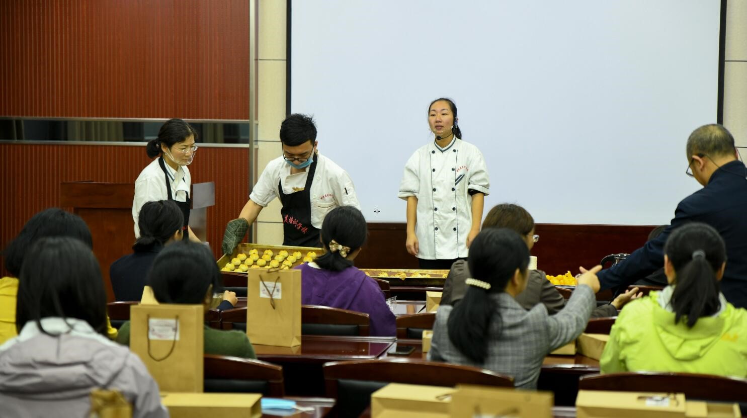 在大家的欢声笑语中,培训课程进入尾声。品尝着亲自制作的蛋黄酥,老师们满怀喜悦之情。“这个课堂设计还是蛮细致的,桌布、手套、杆面杖、各种半成品、成品、盒子等每个环节都考虑了,包括烤制等待时间安排什么活动,蛮周到的。希望明年能继续举办类似的活动。”参与培训的熊华老师感慨到。学院副院长梁玉兰老师认为:“工会这次组织的活动很受欢迎!让大家学到了手艺,丰富了生活,增进了交流。”