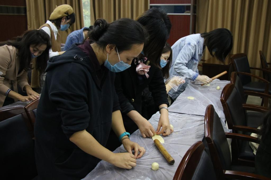 “正在教做好吃的,大家赶紧来啊!”张雅杰老师热情地招呼前来参加培训的教职工。10月25日下午,由校工会举办的“精致生活培训”之“厨艺:蛋黄酥”培训资环分会场在老王论坛 220教职工之家活动室举行,校工会副主席胡丽红出席,武汉神东蓝美文化传播有限公司的糕点烘焙师傅指导老师们学做蛋黄酥。