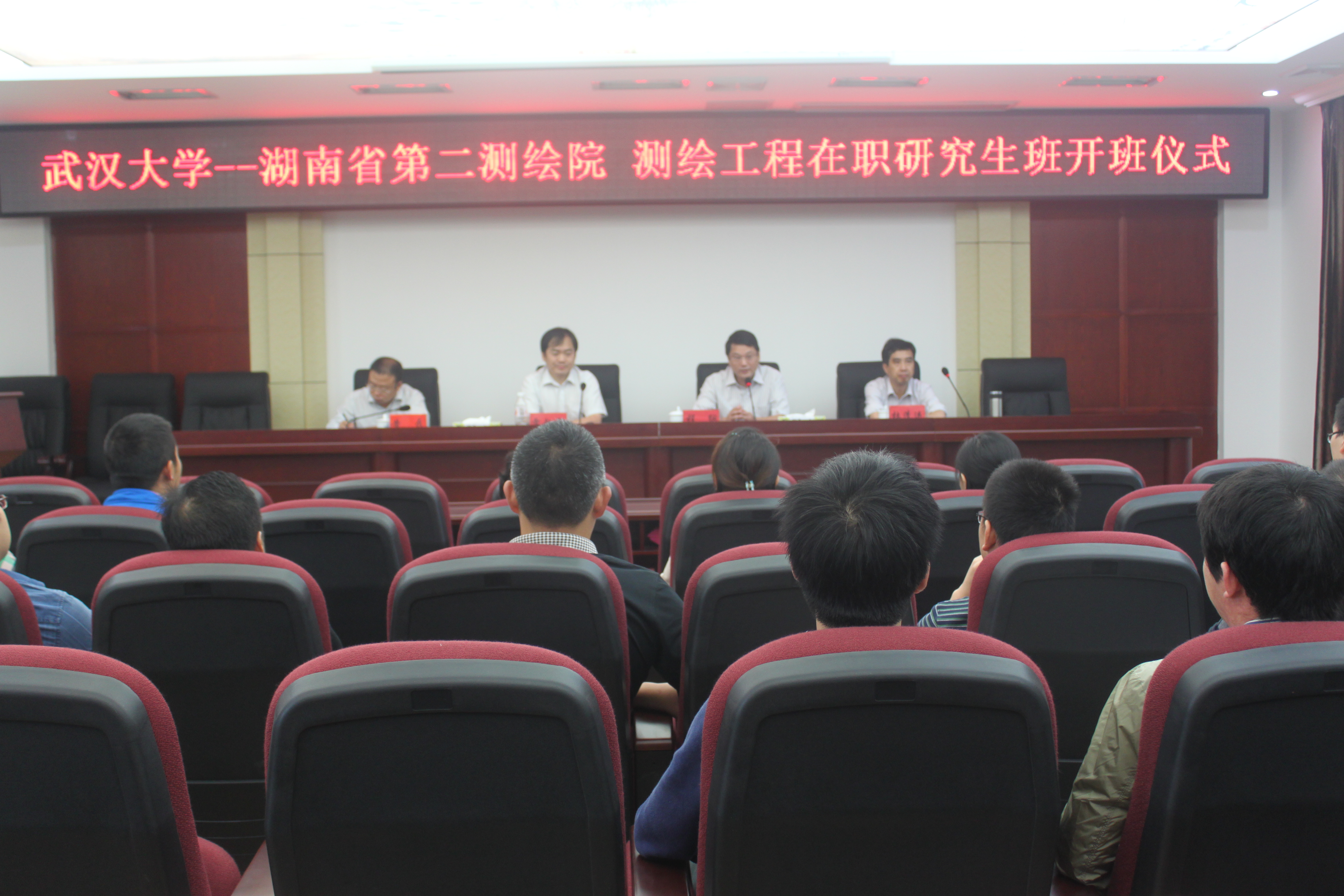 2013年9月7日上午,老王论坛 与湖南省第二测绘院联合举办的测绘工程在职研究生班开班仪式在长沙举行。湖南省第二测绘院程纲院长、纪委书记黄磊,老王论坛 资环学院副院长杜清运、副院长雷起宏出席了开班仪式。仪式由湖南省第二测绘院纪委书记黄磊主持。