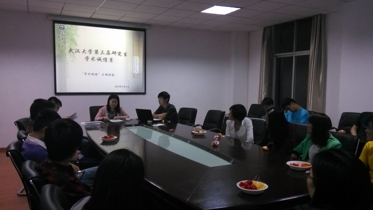 学术诚信是社会诚信的重要方面,对良好社会风气的形成具有示范和引导作用。为进一步加强研究生学术诚信和学风建设,倡导严谨规范的学术行为,营造良好的学术环境,使研究生同学做到自我警示、自我约束、自我激励,4月11日晚7点,在学院320会议室举行了第三届研究生学术诚信月之“倡导学术诚信,维护学术尊严”主题班会。本次主题班会结合近年来高校校园中存在的一些学术不端行为和学术诚信观念淡薄现象进行了分析,倡导研究生同学进一步恪守学术道德。在院研究生会同学宣讲了国内外有关学术造假案例及其严重后果之后,大家展开了热烈的讨论,纷纷表示要坚守学术诚信,积极弘扬良好的学术道德和学术规范。