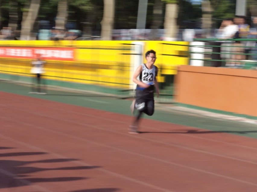 不愧是最后一棒的选手。相机跟踪拍摄周围的事物都变模糊了,只能依稀看清号码,而手中的接力棒都成为蓝色的幻影。冲刺吧,英雄!胜利就在你的前方!