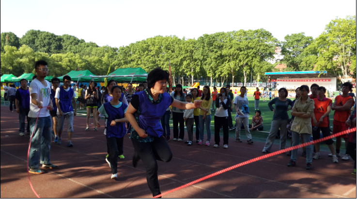 随着一声哨响,比赛开始。老师学生、男生女生伴随着一、二的节奏劲往一处使,嘶吼声伴随着彩旗在每个人心中紧张的回荡。