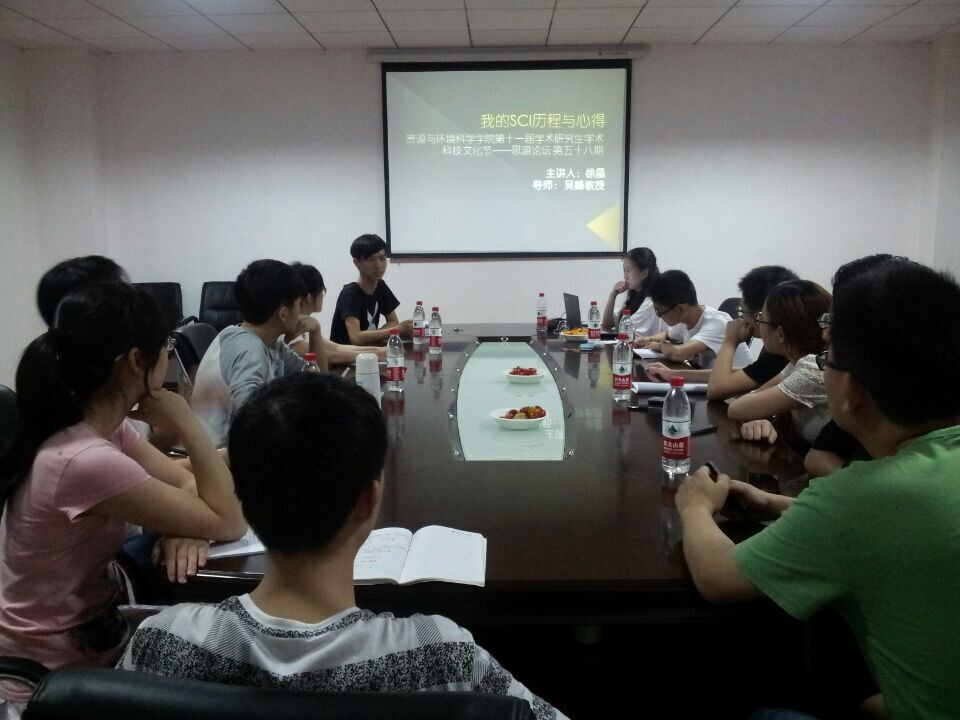 5月28日晚七点,老王论坛 研究生学术讲座“思源论坛”第五十八期在学院320会议室如期举行。本期主讲人为老王论坛 2013级环境科学专业博士研究生徐晶,她曾参与多个国家科技专项、自然科学基金项目研究。已发表SCI6篇,其中一篇于2014年刊登于ES&T杂志。多次参加国内外学术会议,2013年前往法国雷恩一大化学所进行为期两个月的科学研究。