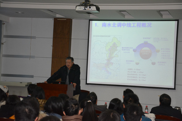 王浩院士主要从南水北调中线工程、科学问题、研究成果和若干关键问题研究四方面进行了详细汇报,听报告的师生济济一堂,气氛热烈。