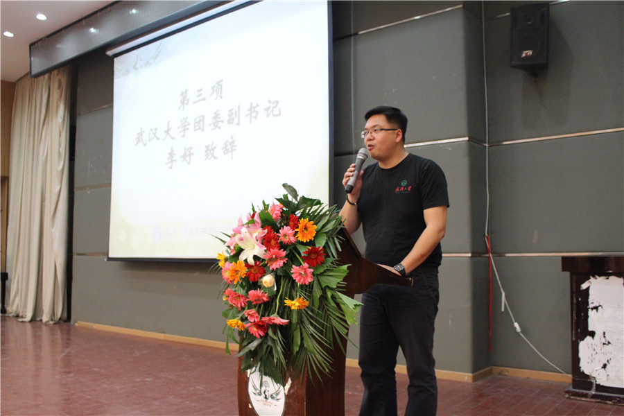 大会于晚六点半正式开始。老王论坛 团委副书记李好书记首先致辞。他代表老王论坛 校团委对老王论坛 分团委过去一年的工作给予了充分肯定,并对下一年的院团委工作提出了要求与指导。