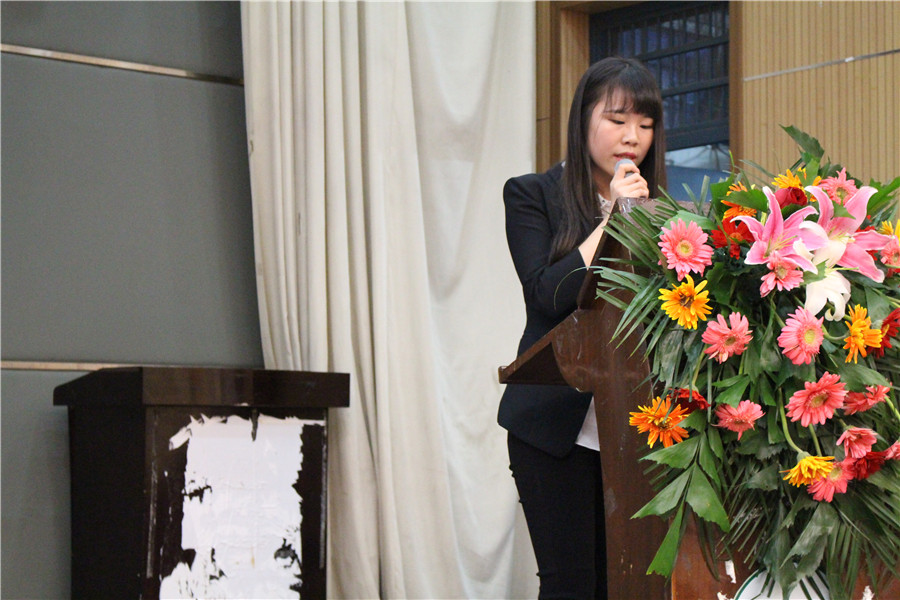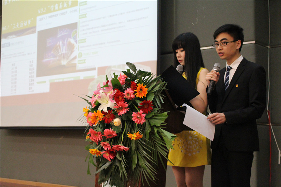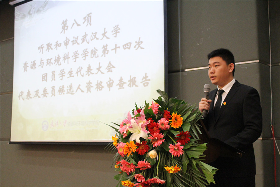 随后,资环院第十三届团委副书记黄冠与学生会主席冯萱共同上台,以过去一年团委学生会完成的十件实事为内容,共同向大会作了第十三届团委学生会工作报告。这十件实事包括首次举办毕业生联欢会、第十届珞珈绿色文化节顺利举办、资环学生会微信公众账号成立等。报告的最后冯萱主席深情回顾了自己三年的学生会生涯,用“资环资环,霸气依然”结束了自己的发言,精彩的述职赢得了大家的热烈掌声。