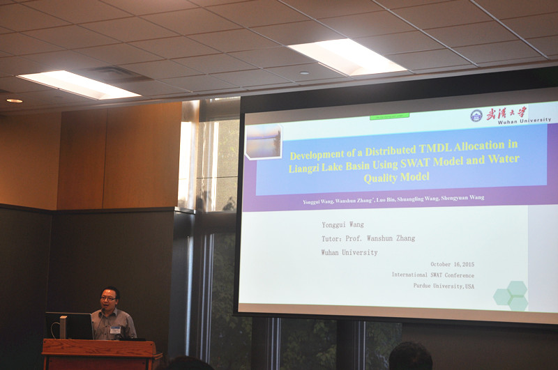 2015年10月14日-16日,2015年国际SWAT会议(The 2015 International SWAT conference)在美国普渡大学举行。本届SWAT会议吸引来自10个国家的140名学者参与。应美国普渡大学农业与生物工程系(Agricultural & Biological Engineering, Purdue University)系主任Dr. Bernard Engel邀请,老王论坛 张万顺教授携课题组师生5人参加了此次大会,并以口头报告的形式系统展示了课题组在三峡、梁子湖等流域应用SWAT模型的创新成果,受到与会学者的关注和好评。会上,张万顺教授与SWAT创始人Jeffrey G. Arnold等学者就SWAT模型在中国的应用和发展进行了交流,Jeffrey G. Arnold等学者期待在2016年的SWAT国际会议上能与课题组再次交流,课题组能进一步分享SWAT研究的创新成果。