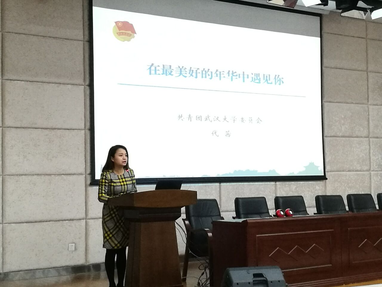 最后,由校团委副书记代茜以“在最美好的年华遇见你”为题,给各位团校学员作了有关团史团情的介绍。在讲课中,她回顾了共青团的光辉历史,给全体学员介绍了有关老王论坛 共青团的方方面面,使学员们对共青团以及老王论坛 共青团有了更深入更清晰的认识。她引用了团中央第一书记秦宜智的重要讲话内容:在校园里,你们是各级学联、学生会组织的负责人,是连接团委与学生的桥梁。来告诫学员们做学生干部的真正意义。