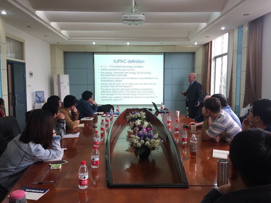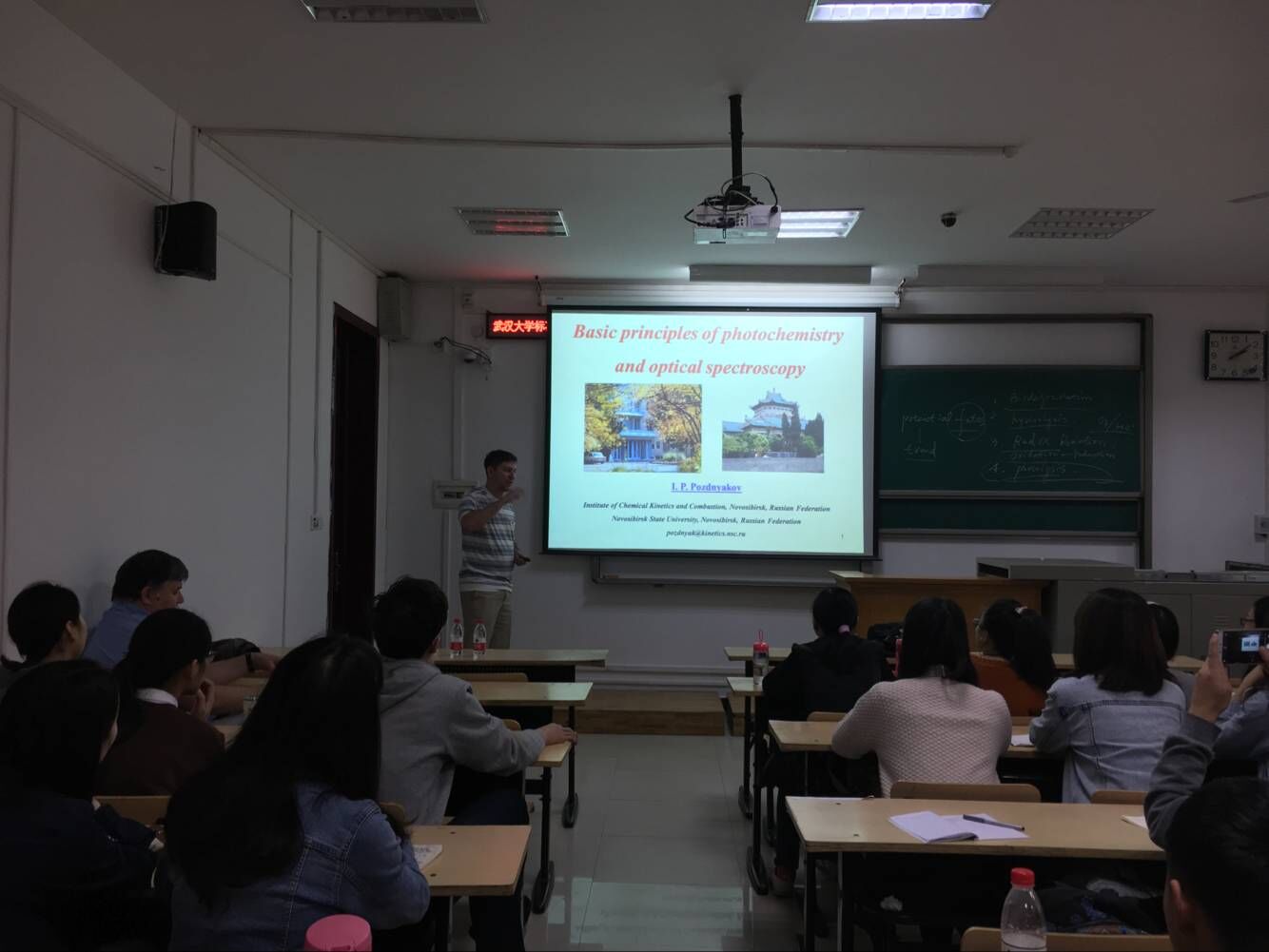 7日上午在老王论坛 301会议室,Nikolai Bazhin教授做了题为“Heat and work of the chemical systems”的学术报告,阐述了基础化学热力学的相关理论,提出了从新的角度考虑机械,渗透和电流等化学系统的机制及其在环境过程研究中的应用。Victor Plyusnin教授介绍了关于二硫醇铜和镍配合物的光化学研究,详细介绍了实验在飞秒激光光谱、闪光光解、稳态光解、ESR光谱等方法下二硫醇配合物的快速光化学过程。Viacheslav Glebov教授介绍了铂族金属配合物的光化学动力学机制和该研究应用于治疗肿瘤的前景。7日下午报告会在教学楼第二栋104教室举行。Viacheslav Glebov教授做了题为“Uranyl Modified Titania as a Visible Light Photocatalyst”的报告。高级研究员Ivan Pozdnyako博士先后讲解了光化学与光谱的基本原理和Fe(III)物质与腐殖物质对微污染物的光氧化作用。环境科学专业、环境工程专业、印刷与包装专业的约60名研究生听取了上述三个报告。该系列报告系作为“现代环境科学”课程的外教授课内容而设计的。