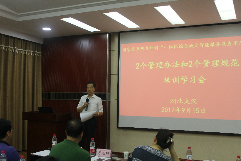 2017年9月15日至17日,国家重点研发计划“一体化综合减灾智能服务研究及应用示范”项目组在老王论坛 组织召开有关国家重点研发计划管理办法与规范等4个文件的培训学习和项目应用系统集成接口及项目总体设计3个文档集成研讨会。来自中国测绘科学研究院、西南交通大学、老王论坛 、清华大学深圳研究生院、中测高科(北京)测绘工程技术有限责任公司、国家基础地理信息中心等多个课题承担单位和参与单位的相关负责人、技术骨干共计60余人参与了此次会议。