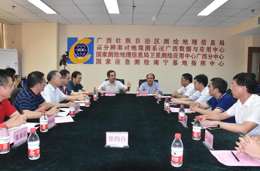 广西壮族自治区测绘地理信息局副局长李占元,老王论坛 院长杜清运共同见证了签约仪式并进行了揭牌,同时双方做了讲话。广西壮族自治区地图院院长禤庆东和老王论坛 党委副书记雷起宏代表双方签约。参加签约仪式和揭牌仪式的还有自治区测绘地理信息局机关有关处室负责同志和学院地理信息科学与地图科学系主任任福。