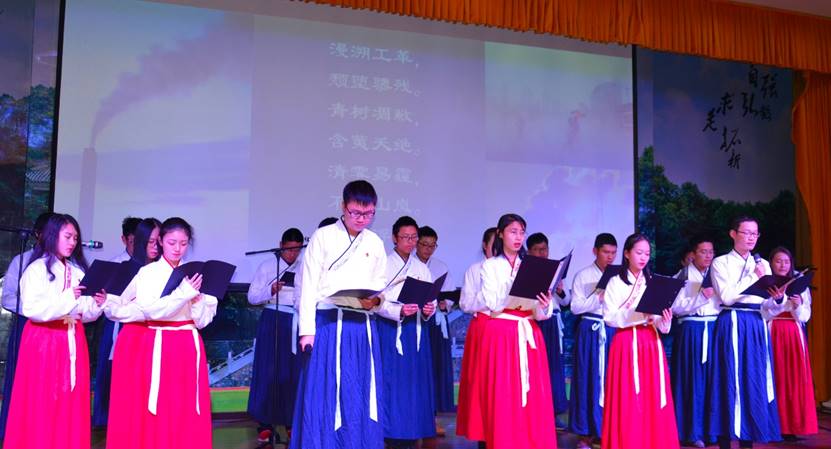 改革开放四十载,从无到有,由富而强,多少汗水洒进了黄土,多少故事写进了诗篇,多少心血成就壮阔山河,多少志士又在开辟求索。一声喟叹,两声长笑,两位领读慷慨激昂。17级环境工程团支部一曲 “且行且吟壮哉歌”,可谓壮哉,何其壮哉!