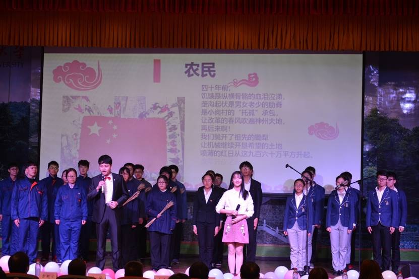 改革开放如春风,给中国带来了生机,给人们的生活带来了天翻地覆的变化。17级地信四团支部以四个独特的角色,带来了四种独特发展历程,带领我们见证祖国走向昌盛,见证前方的中国梦。“筑中华绮梦,笑领风骚”。