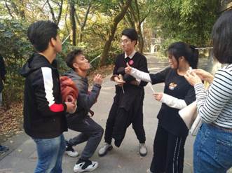 第6站:樱花大道(齐力冲顶——三人四足,登樱顶),活动过程中,参赛成员相互配合,勇往直前,齐力冲顶,展现了珞珈学子不畏困难,奋勇争先的良好风貌。