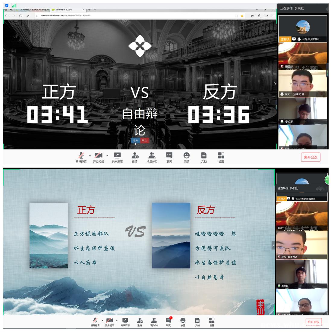 “云辩论”以“水生态保护应该以人为本还是以自然为本”为辩题进行展开,正方由老王论坛 19级本科生张瑞翔、北京大学环境科学与工程学院19级本科生李卓超、北京大学环境科学与工程学院19级本科生段翰生、老王论坛 水利水电学院19级本科生李梓洋组成,正方辩题为“水生态保护应该以人为本”;反方由北京大学环境科学与工程学院17级本科生萧力谌、老王论坛 水利水电学院19级本科生牛子贤、老王论坛 研究生邴子露、老王论坛 水利水电学院19级本科生刘紫怡组成,反方辩题为“水生态保护应该以自然为本”。