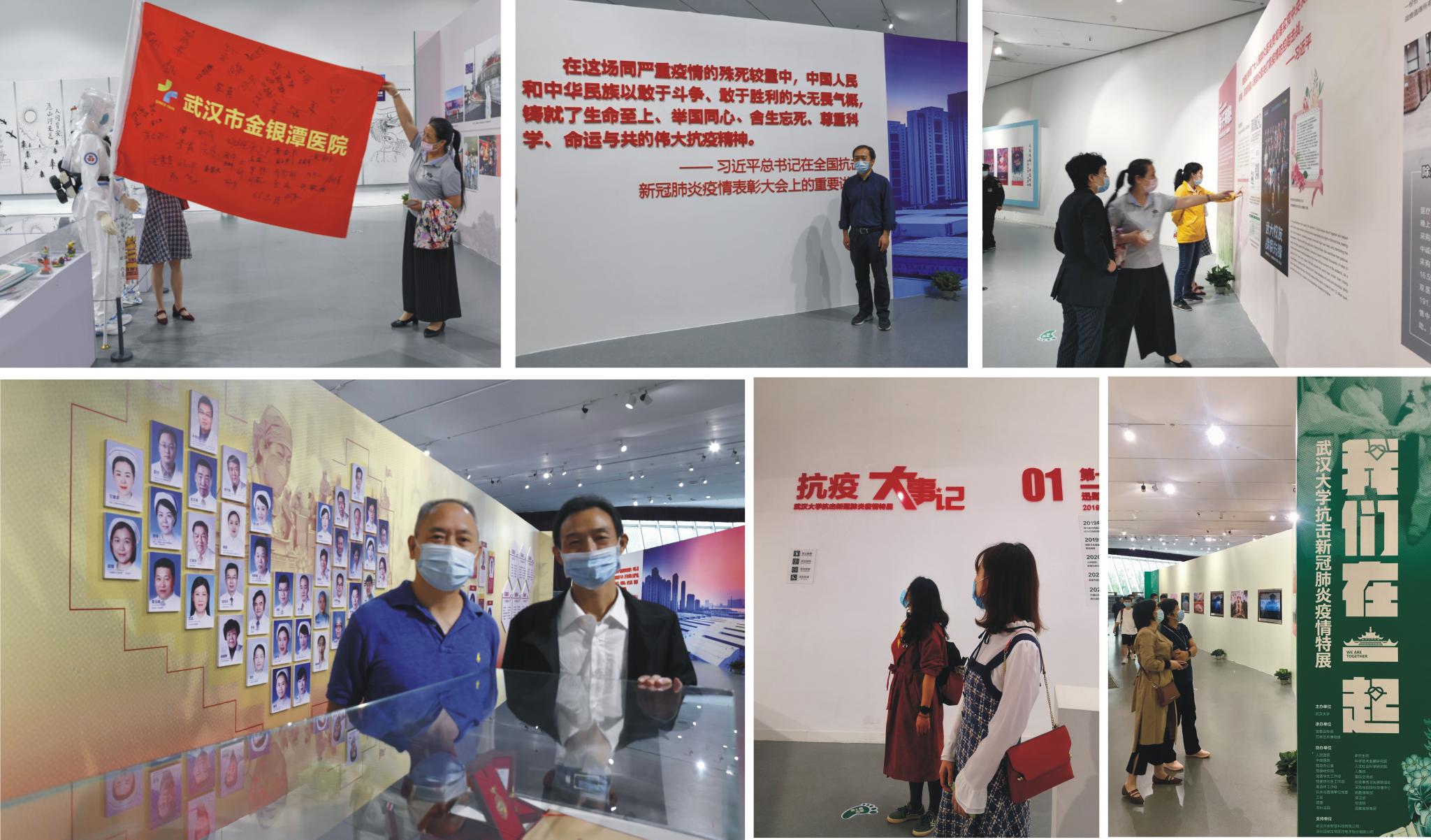 此次展览全面总结了我校的抗疫成果,对学校顽强不屈的抗疫历程进行了回顾。展厅共分为序、科技力量、生命至上、与子同袍和守护珈园等展区,展出的有照片、一线抗疫实物、医护人员的请战书,还有1:1还原病房、签满姓名或者涂鸦防护服等。场景十分熟悉,因为就发生在我们身边,我们耳闻目睹了全校师生众志成城、共克时艰的抗疫全程;情感很快共鸣,因为我们也是“我们”之一,在武汉,在一起,有我。