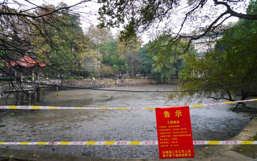 自11月25日起,在学校后勤保障部的支持下,星湖生态修复工程正式启动,同时学校后勤保障部配合进行了地下污水截流及坍塌湖岸的修缮工作。