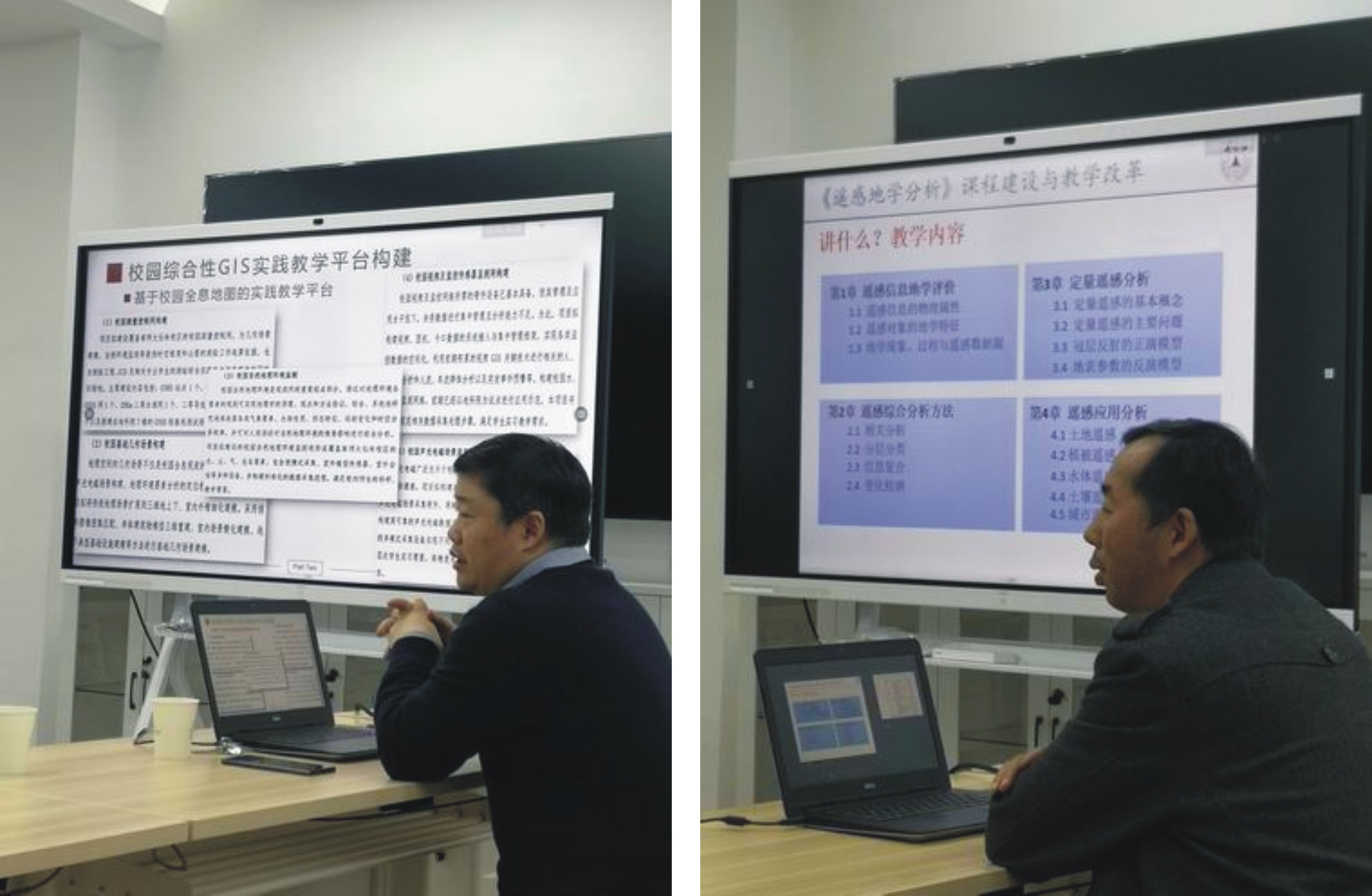 张书亮教授以“打造校园综合GIS实践教学平台,推动地理信息科学专业一流实践课程改革”为题,从当前专业实践课存在的诸如实践教学内容体系、实践教材、在线实践课程、实践教辅软件、匹配社会与产业发展需求、实验实践的内容标准与考核量化等问题出发,提出了基于校园综合性GIS实验教学平台的《地理信息原理》实践课程改革与探索,并建议高校GIS专业应当将实验课的建设作为新一轮课程建设的重要突破口,努力做好在线实验课的开发,形成新时代新型实验教学内容体系。杜培军教授结合自身的教学经历,从开课背景、课程目的出发,以如何运用遥感解决实际地学问题为契机,采用开放式教学、问题导向引入教学、模块化教学等方法,探讨《遥感地学分析》课程建设与教学改革思路:强化立德树人、完善教学资源、加强实践环节来培养地学研究、遥感数据尺度观;建立案例库、强化综合训练、培养地学思维、创造引导持续主动学习。