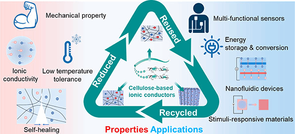 在本综述中,我们从纤维素的基本结构特征、材料设计策略和应用等方面对纤维素和纤维素衍生材料制成的离子导体进行了全面的综述,并进一步讨论了纤维素基离子导体在循环和环境可持续性框架内缓解日益增长电子废弃物污染问题的潜力和该领域的未来发展方向。