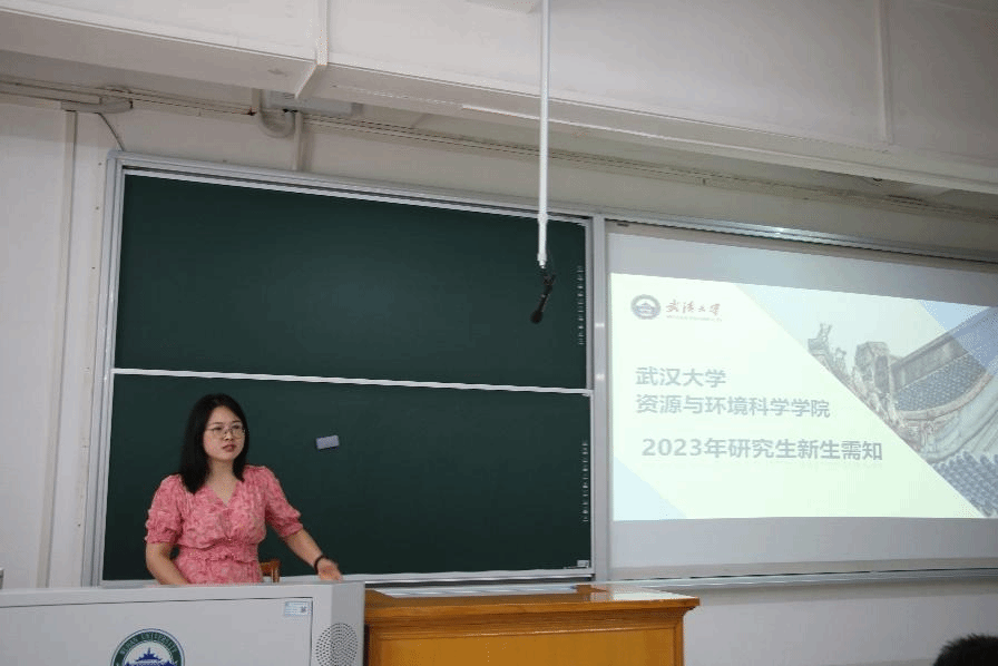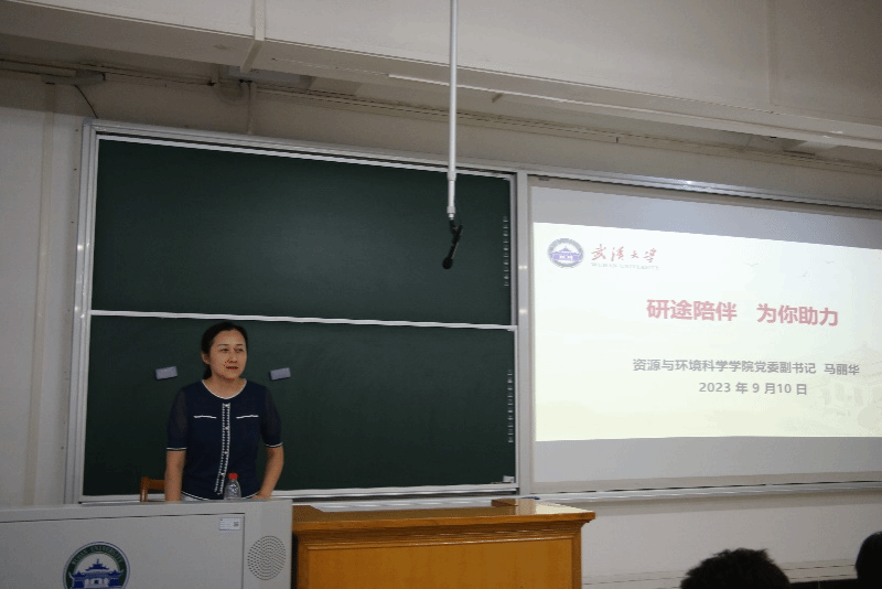 第四项,老生代表徐立颖博士发言。徐立颖同学分享了自己在武大的求学经历。认为武大资环学院卧虎藏龙,是一个培养人才的很好的平台。她表示,逃避并不是解决问题的手段,面对科研道路上的难题,我们要勇往直前,不能畏惧退缩,努力寻找解决问题的方法。资环学院是一个温暖的大家庭,科研道路可能很漫长,但绝不会孤独。作为全省“研究生样板党支部”的支书,徐立颖博士也谈到了她所组织和参与的一些党建等活动,并号召新生在全国最美的校园中提升自己,在理论和实践中锻炼自己。