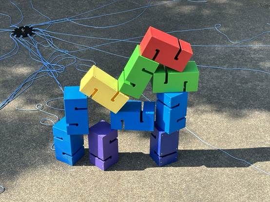 在组队完成后,大家便进入了团队竞赛环节。合力建塔这一游戏需要每个人一起拉紧绳头来控制塔钩移动,用塔钩将一块块塔吊起并平稳地搭建在一起。这一拓展项目培训让各个团队协作起来,分工互补,做到统一指挥、统一口令、统一行动,同一条心。