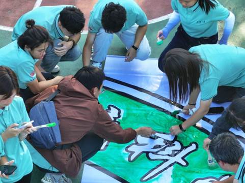 抵达拓展基地之后,首先进行了一系列的预热活动,做集体操、选队长、画队旗、喊口号,使同学们打破隔阂,迅速融入团队。千奇百怪的队旗也展现了同学们的活力和创造力。