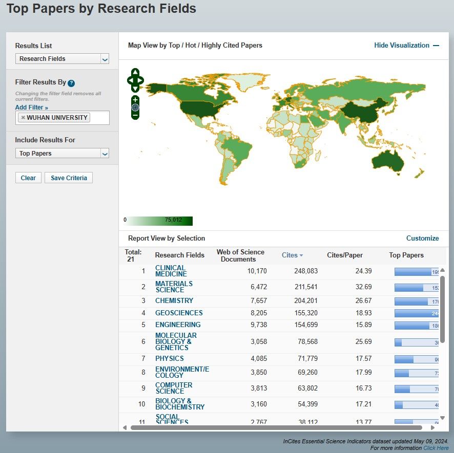 目前,我校已有化学、临床医学、计算机科学、工程科学、环境与生态学、地球科学、材料科学共7个学科进入ESI全球排名前1‰,另有分子生物学与遗传学、物理、生物与生物化学、社会科学、免疫学、神经科学与行为学、药理学与毒理学、微生物学、植物学与动物学、农业科学、数学、经济学与商学、精神病学与心理学共13个学科进入ESI全球排名前1%。