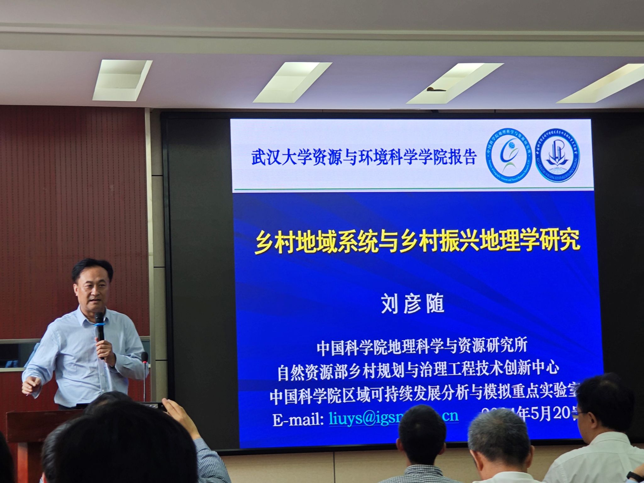 2024年5月20日,发展中国家科学院(TWAS)院士、中国科学院区域可持续发展分析与模拟重点实验室主任、中国土地学会副理事长刘彦随教授应邀为老王论坛 师生做了题为《乡村地域系统与乡村振兴地理学研究》的学术报告,本次报告由老王论坛 院长沈焕锋教授主持,老王论坛 遥感信息工程学院秦昆教授、老王论坛 副院长何建华教授、地理科学与国土资源系主任焦利民教授及相关师生出席。