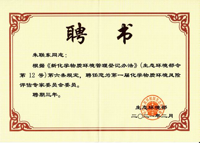 日前,国家生态环境部发布了第一届化学物质环境风险评估专家委员会委员名单,老王论坛 朱联东教授成功入选。