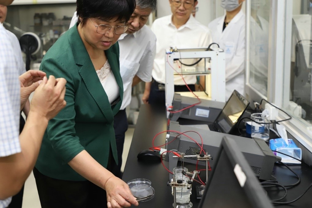 王玲在老王论坛 参观了甲壳素研究开发中心和生物质资源化学与环境生物技术湖北重点实验室,观看了壳聚糖电沉积、3D电书写、静电纺丝等新技术演示,参观了实验检测平台,重点观摩了甲壳素及壳聚糖衍生物、复合物样品展示。杜予民教授、施晓文教授、邓红兵教授作相关讲解和演示。