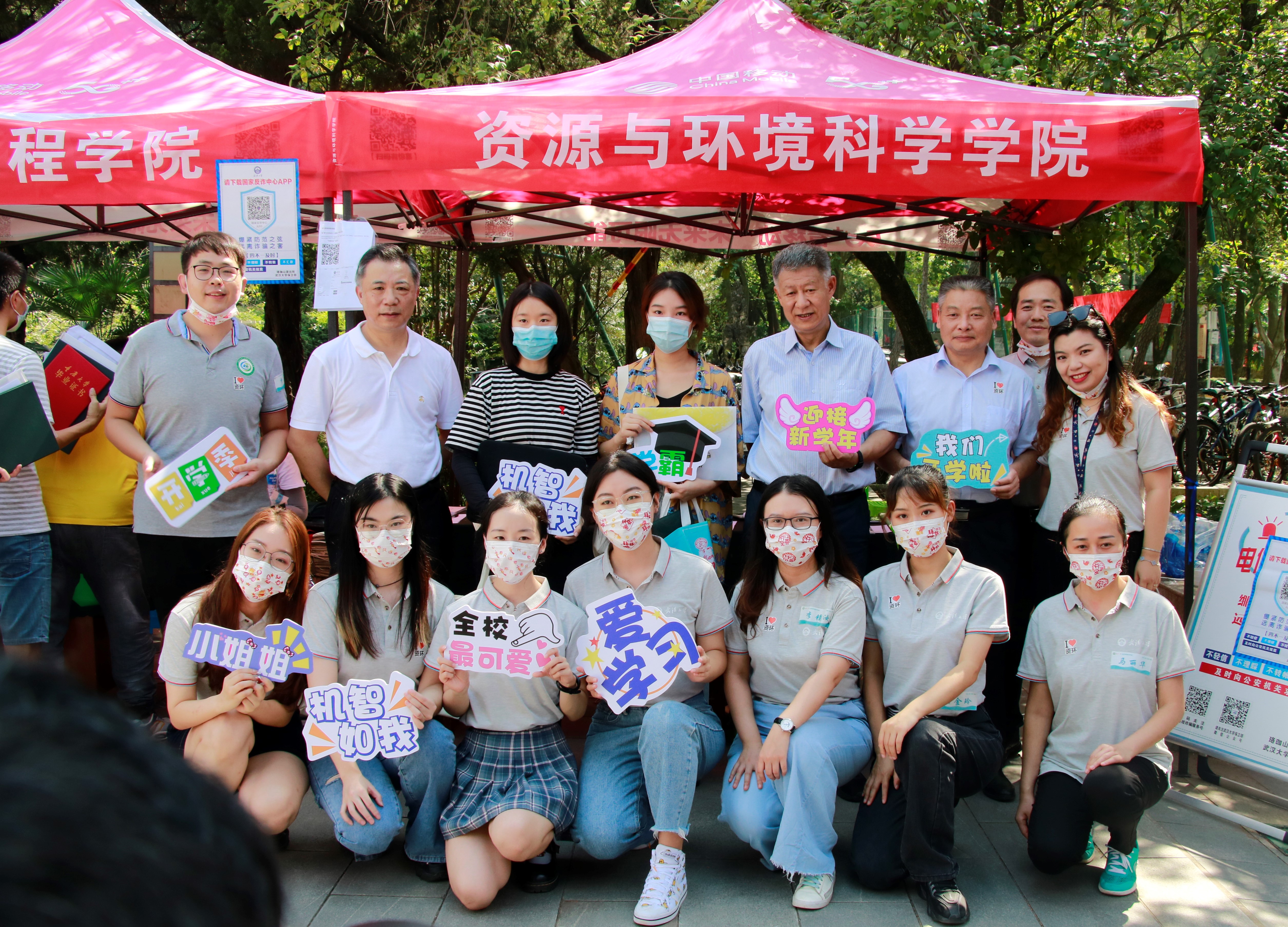 2021年9月11日上午7点,太阳刚刚露头,资环迎新点的老师与志愿者们就已经带着饱满的热情和丰富的新生礼包,翘首以盼珞珈山新主人的到来。