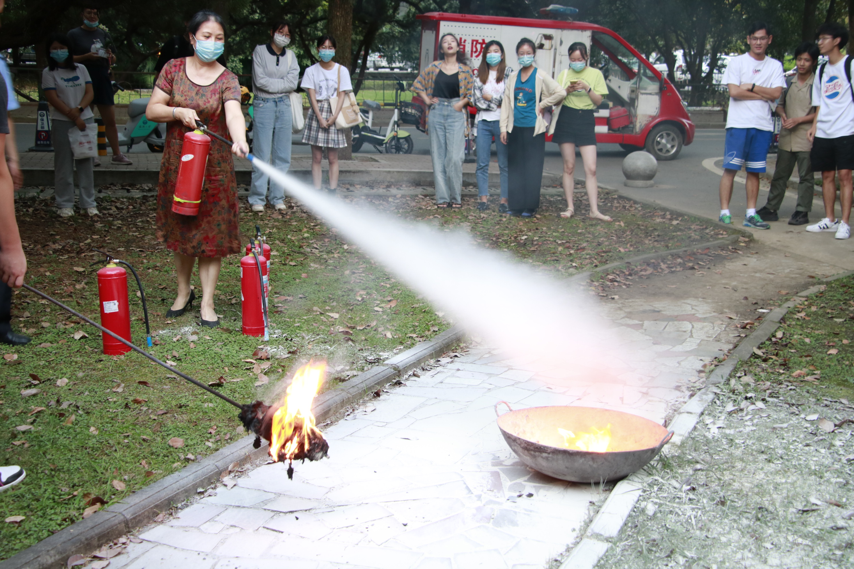 最后,保卫部三分部教官带领大家移步户外,进行了消防相关培训及应急演练。