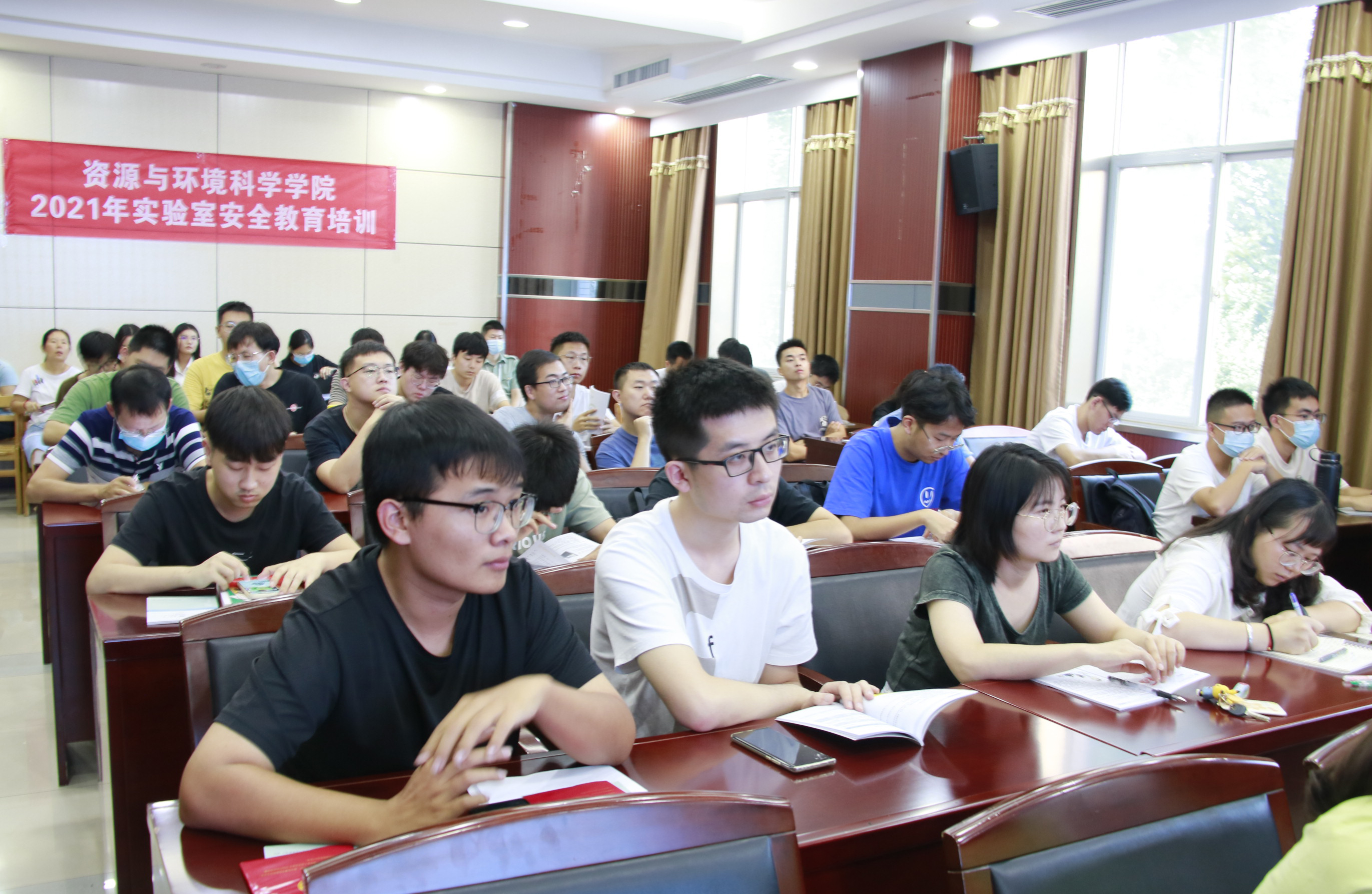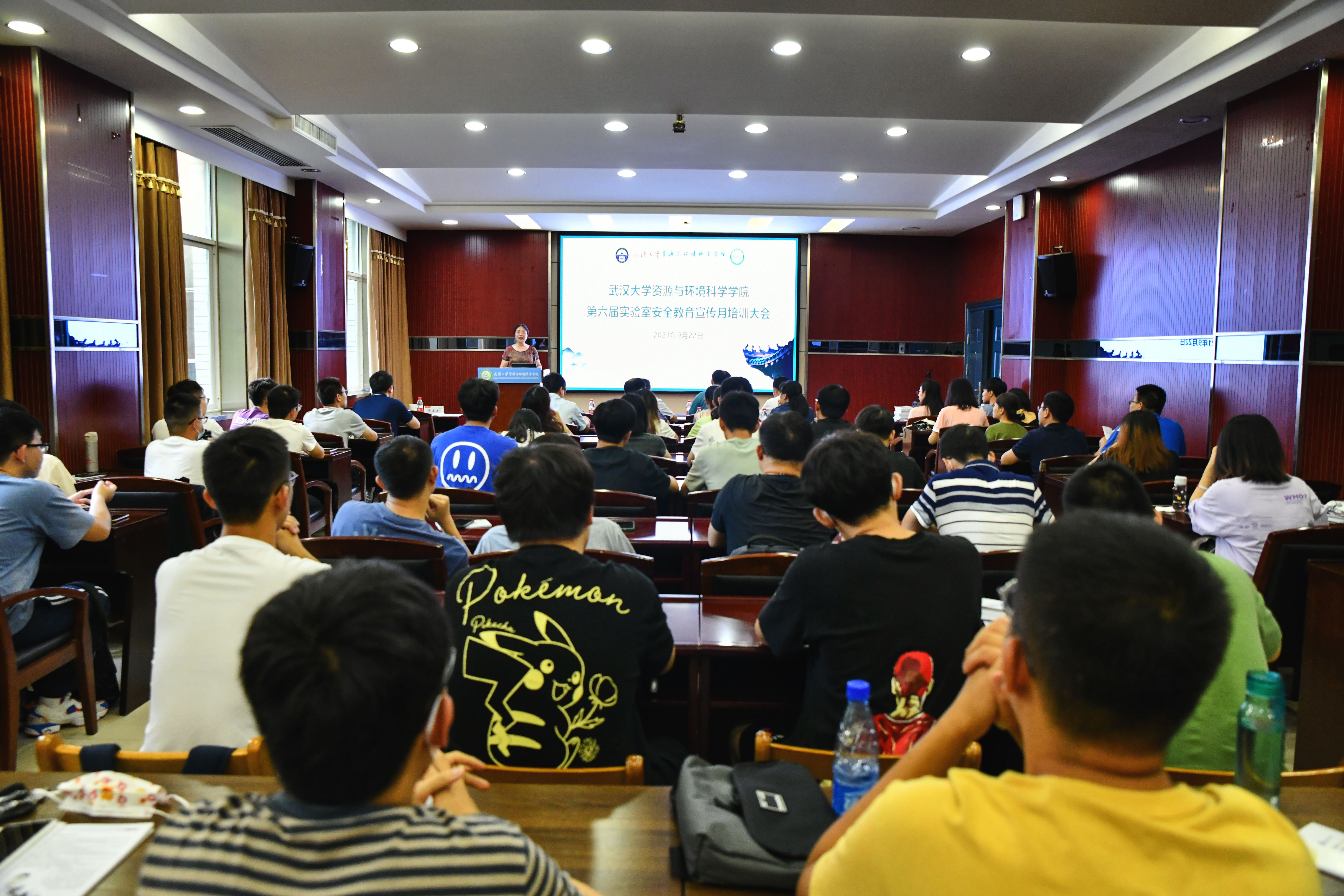 2021年9月22日下午15:00,资环学院于信息学部7号楼220报告厅召开第六届(2021)实验室安全教育宣传月培训大会,出席会议的人员有党委书记刘兴国老师、院党委副书记雷起宏老师、校实验室与设备管理处副处长吴运卿老师、校实验室安全专业委员会主任黄驰教授、湖北省普消湘安防火咨询服务中心教官、研究生辅导员马丽华老师、李韩老师以及全院环境类实验中心科研实验室安全责任人和2021级环境类专业研究生。培训大会由学院分管实验室安全副院长梁玉兰老师主持。
