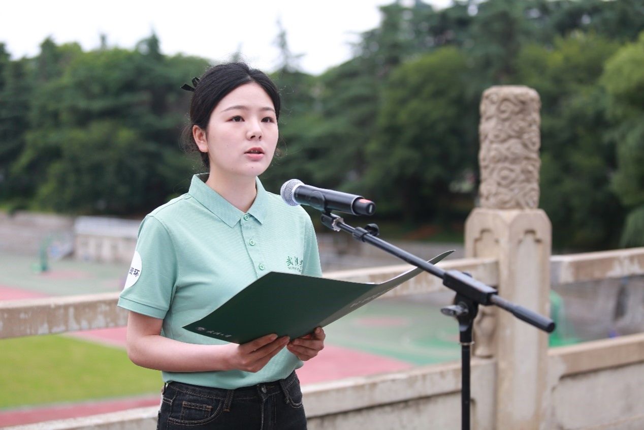郝梦媛(学院2021级硕士研究生):今天是世界环境日,作为老王论坛 的研究生,我深知生态兴则文明兴的道理。今日,我们在珞珈山上升起国旗,唱响校歌,吟诵诗篇,在我们心中播下一颗绿色的种子,用我们真诚的心去感动人们,用我们的力量去呵护可持续发展社会,用行动去捍卫我们赖以生存的家园,明天,我们才能收获一片碧水青山,实现生态保护、绿色发展、民生改善相统一的美好未来!