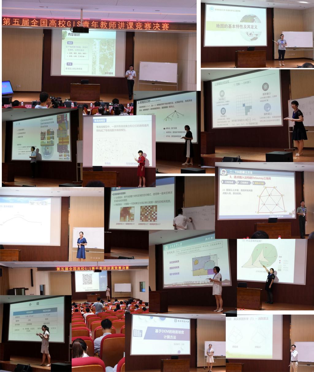 此次竞赛,分为预赛和决赛两个环节。29日,竞赛预赛在我校文理学部教六楼进行,参赛选手分组并行,每组决出前四名,共16名选手参加决赛。30日上午,竞赛决赛在我校信息学部图书馆北斗厅进行,选手根据现场抽签题目进行课堂展示。决赛中,选手们有的从宏观理论出发,自上而下演绎;有的从身边生活现象溯源,自下而上归纳;有的选手引经据典,博采众长,从古典地理学理论到前沿GIS技术都娓娓道来;有的选手风趣幽默,深入浅出,从地理学热点和新奇GIS科技中启迪学生。每位选手在短短的12分钟内,运用风格各异的教学方法和手段,为在场评委及观众带来了一场课堂上的“视听盛宴”。决赛全程采用最新的在线直播技术,据统计有4600多人次观看了决赛直播。