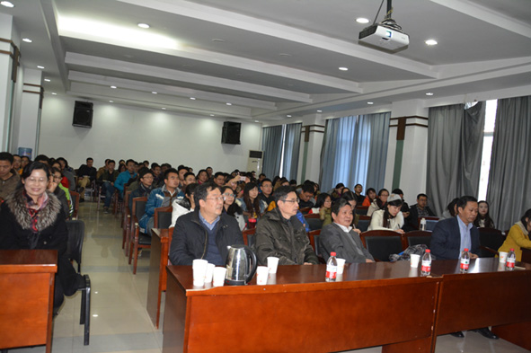 王浩院士主要从南水北调中线工程、科学问题、研究成果和若干关键问题研究四方面进行了详细汇报,听报告的师生济济一堂,气氛热烈。